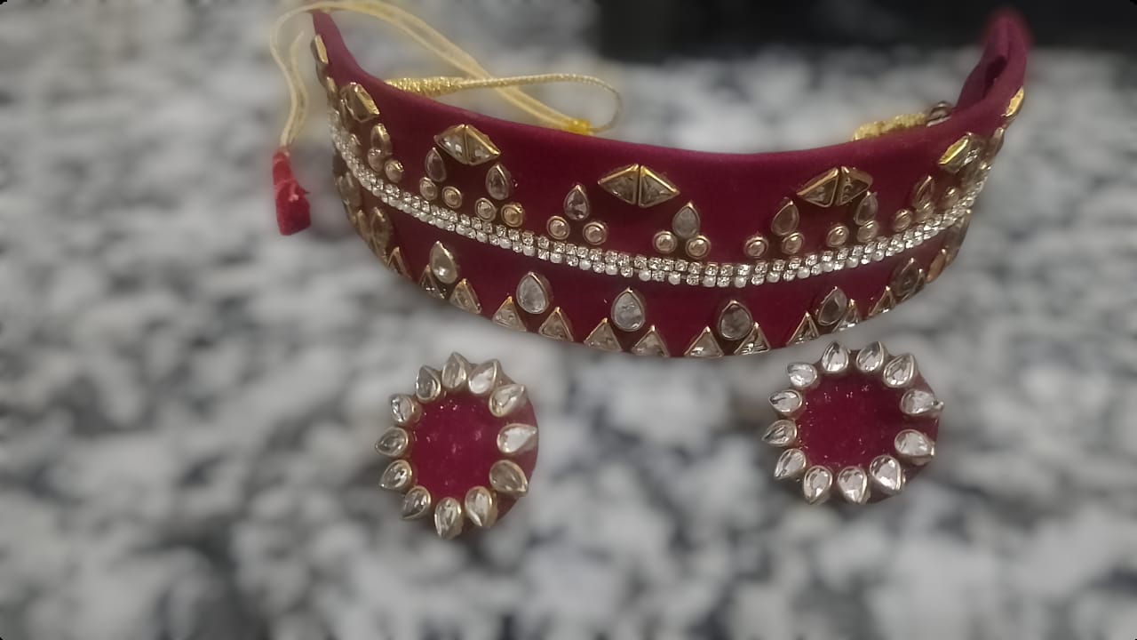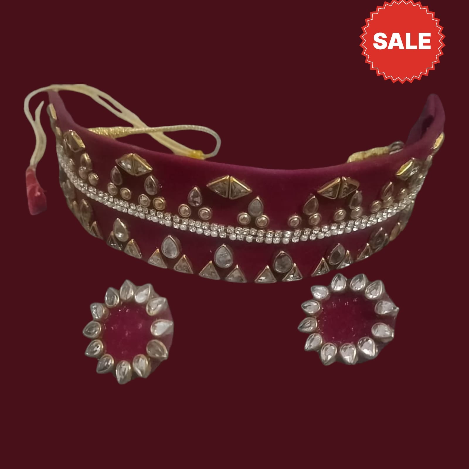 Elevate your ethnic style with this beautifully handcrafted traditional nacklace set, complete with matching decorative patches. This set is perfect for adding a royal touch to your festive and traditional attire, making you stand out in any celebration.